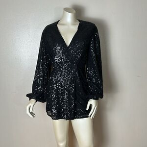 Women’s MABLE black sequins mini wrap dress size XS extra small party cocktail