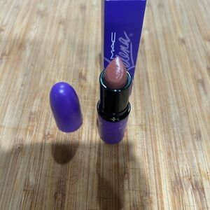 MAC Cosmetics Selena lipstick in a striking purple shade. Perfect for bold looks.