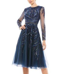 MAC DUGGAL 11136 EMBELLISHED TEA LENGTH ILLUSIONS TWILIGHT MIDI COCKTAIL DRESS 8
