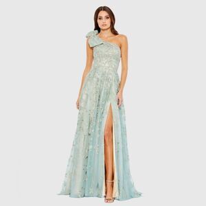 MAC DUGGAL 11177 Green Embellished Bow One Shoulder A Line Gown
