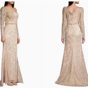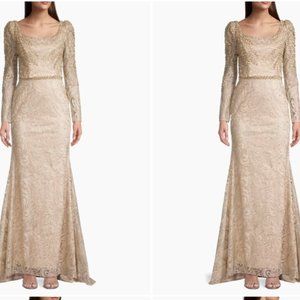 MAC DUGGAL 11187 EMBROIDERED APPLIQUE SHOULDER TRUMPET LIGHT GOLD GOWN sz 6