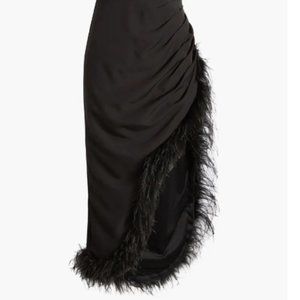 MAC DUGGAL 11626 SLEEVELESS FAUX WRAP FEATHER DETAIL SIDE SLIT BLACK DRESS sz 6
