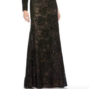 MAC DUGGAL 12444 EMBELLISHED ONE PUFF LONG SLEEVE TRUMPET BLACK GOWN sz 4