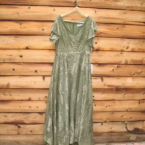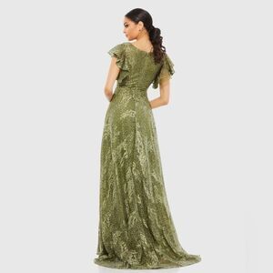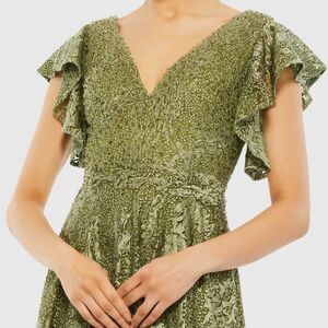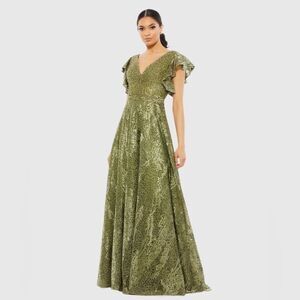 MAC DUGGAL 20310 Womens Green Embroidered Flutter Sleeve V-Neck Gown Dress