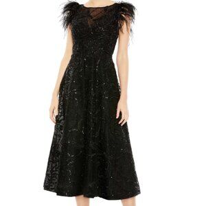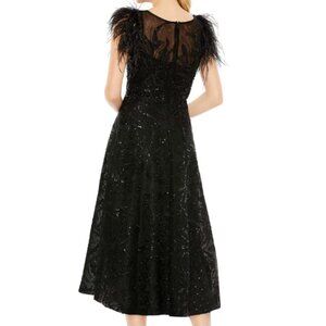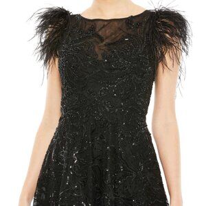 MAC DUGGAL 20400 FEATHER SHOULDER EMBELLISHED BLACK DRESS sz 8