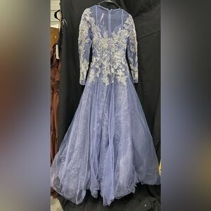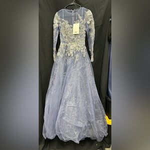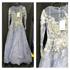 MAC DUGGAL 20441 NWT Embellished V Neck Long Sleeve A Line Gown in Slate Blue