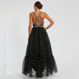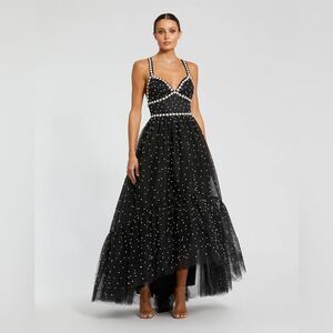 MAC DUGGAL Black Pearl Beaded High Low Gown