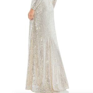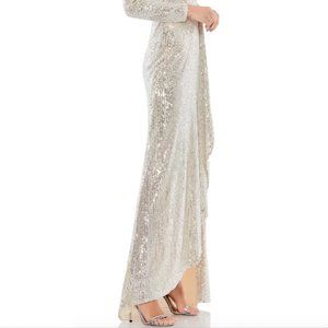 MAC DUGGAL 26395 SEQUIN FAUX WRAP SILVER EVENING GOWN sz 10