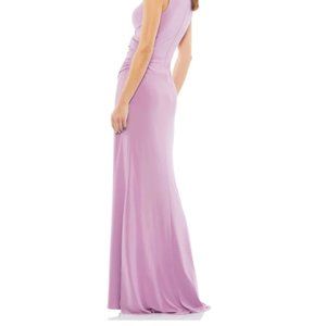 MAC DUGGAL 26513 RUCHED STRETCH JERSEY V-NECK THIGH SLIT LILLAC GOWN sz 0