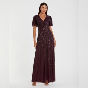 MAC DUGGAL 35109 Womens Purple Embellished Flutter Sleeve Gown Dress