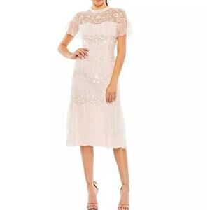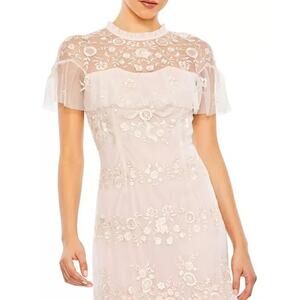 MAC DUGGAL 35147 High Neck Mesh Tier Embroidered Dress in Blush (Cream with slight Pink hue)