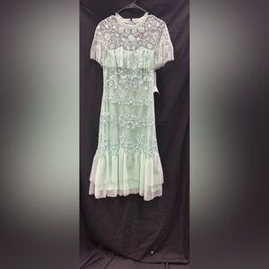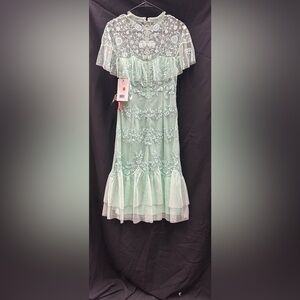 Step out in style with this elegant mint green lace dress. Perfect for any occasion, its delicate lace detailing adds a touch of sophistication.