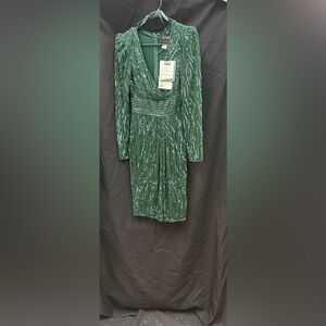 MAC DUGGAL 4632 NWT Long Sleeve Embellished Sequin Cocktail Dress