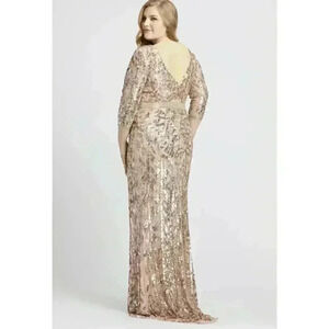 MAC DUGGAL 4857 Rose Gold Embellished Beaded Sequin V-Back Evening Gown 18W Maxi
