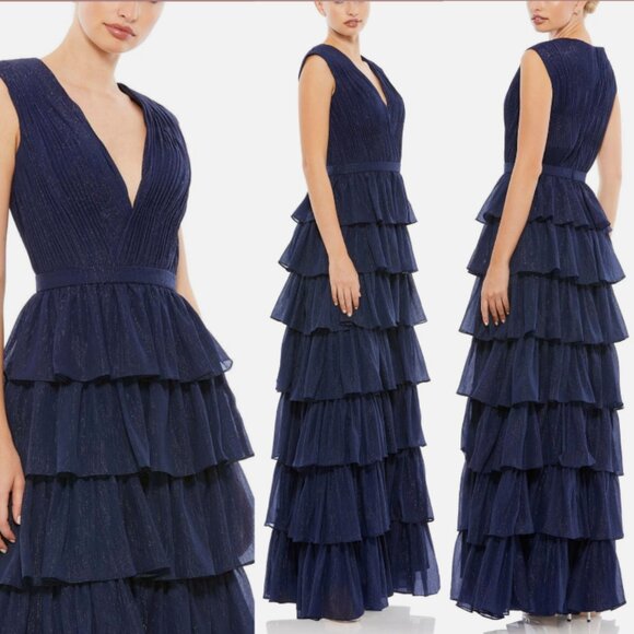 MAC DUGGAL 49287 SPARKLY RUFFLED LAYERED MIDNIGHT GOWN sz 4