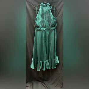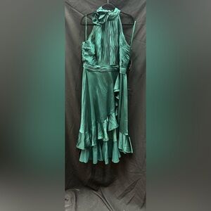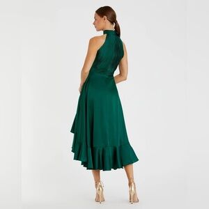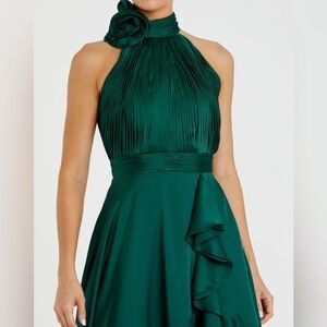 MAC DUGGAL 49488 NWT Green Halter Neck Flower Detail Ruffled Midi Dress