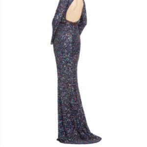 MAC DUGGAL 5014 MULTU COLOR SEQUINED LONG BELL SLEEVE GOWN sz 10