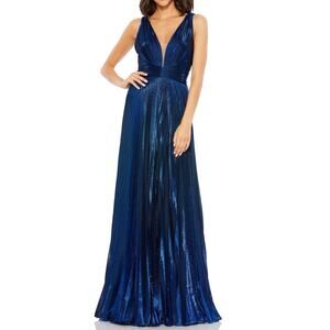 MAC DUGGAL 50640 Plunging Neck Pleated Metallic Gown Sz 10 New w/ Tag MSRP $498