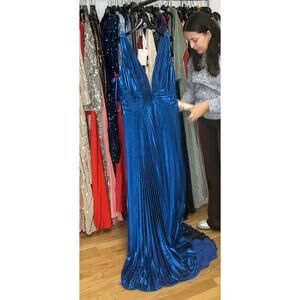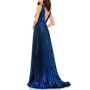 MAC DUGGAL #50640 Plunging Neck Pleated Metallic Gown in Sapphire