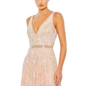 MAC DUGGAL 5215 Sequin Beaded Embellished Glitter Accented Waist Dress 4 NEW
