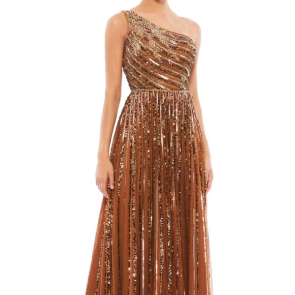 MAC DUGGAL 5220 EMBELLISHED ONE SHOULDER A-LINE COPPER GOWN sz 14