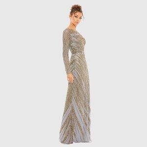 MAC DUGGAL 5240 NWOT Gold Long Sleeve Beaded Column Gown