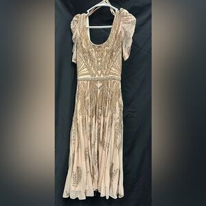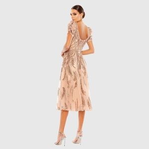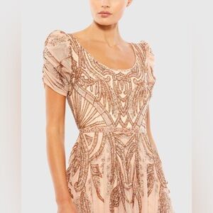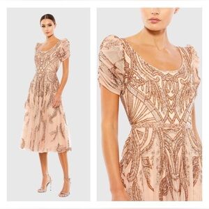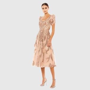 MAC DUGGAL 5434 NWOT Beige Short Sleeve Beaded A-line Tea Length Dress