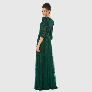 MAC DUGGAL 5497 NWT Green Embellished V Neck 3/4 Sleeve A Line Gown