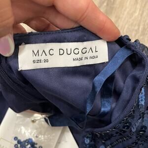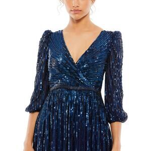 MAC DUGGAL 5509 Wrap Over 3/4 Sleeve Sequined Tulle Gown Midnight 20 NEW