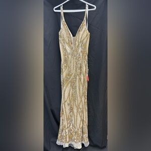 MAC DUGGAL 5517 NWOT Embellished Sleeveless Plunge Neck Low Back Gown