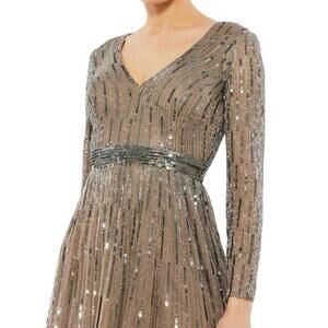 MAC DUGGAL 5528 Long Sleeve Tea Length Midi Dress Sz 2 Dark Taupe NWT $398 ✨