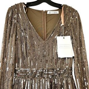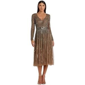 MAC DUGGAL 5528 Long Sleeve Tea Length Midi Dress Sz 2 Dark Taupe NWT $398 ✨