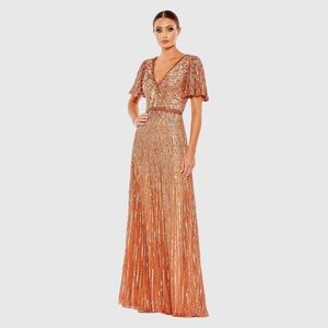 MAC DUGGAL 5538 NWT Embellished V Neck Butterfly Sleeve Column Gown in Copper