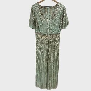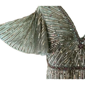 MAC DUGGAL 5538 PLATINUM COLUMN GOWN V-NECK BUTTERFLY SLEEVE NWT SZ 16 GREEN