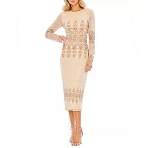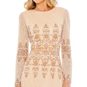 MAC DUGGAL 5576 Peach Embellished Long Sleeve High Neck Sheath Dress