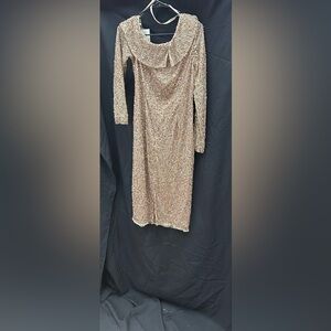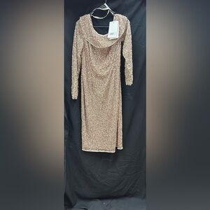 MAC DUGGAL 5595 NWT Long Sleeve Sequin Off The Shoulder Midi Dress