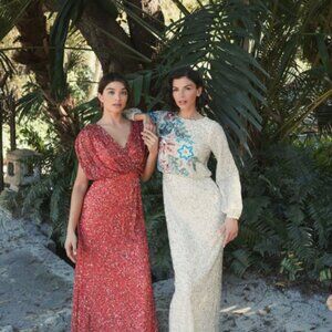 MAC DUGGAL 5615 EMBELLIHSED MULTI FLORAL HIGH NECK NUDE GOWN 14