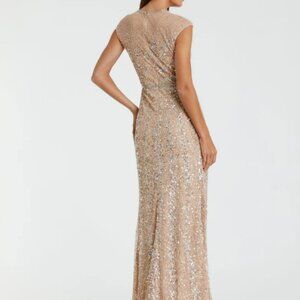 MAC DUGGAL 5619 EMBELLISHED ILLUSIONS HIGH NECK CAP SLEEVE NUDE GOWN sz 8
