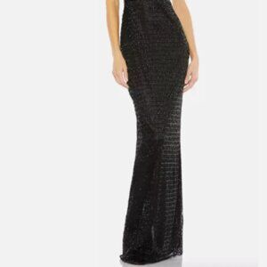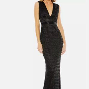 MAC DUGGAL 5625 BEADED CAP SLEEVE V-NECK BLACK SEQUIN COLUMN GOWN sz 14