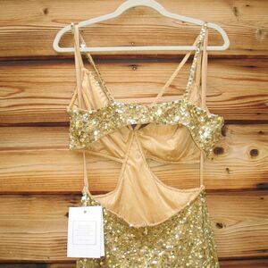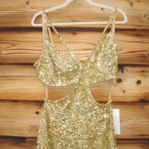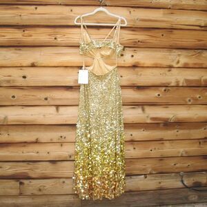 MAC DUGGAL Gold Thin Strap Cut Out Gown With Ombre Sequins