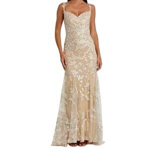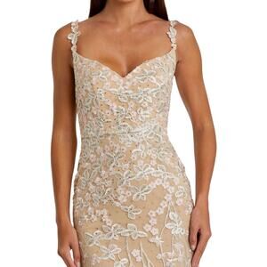 Mac Duggal 67492 Floral Embroidered Corset Bodice Gown in Nude Multi Color