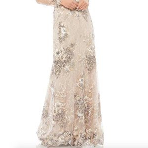 MAC DUGGAL 67539 EMBELLISHED V-NECK ILLUSIONS LONG SLEEVE TAUPE GOWN sz 16