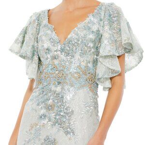 MAC DUGGAL 67842 BELL SLEEVE FLOAL EMBELLISHED SEAFOAM GREEN GOWN sz 14