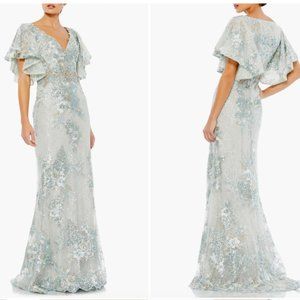 MAC DUGGAL 67842 BELL SLEEVE FLORAL EMBELLISHED SEAFOAM GOWN sz 6