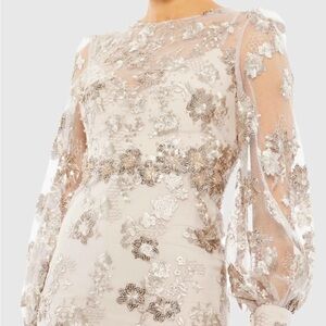 MAC DUGGAL 67862 NWT Embellished High Neck Illusion Long Sleeve Midi Dress