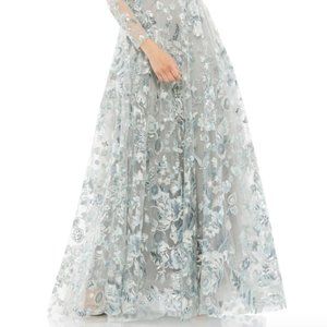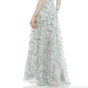 MAC DUGGAL 67869 EMBELLISHED VNECK ILLUSIONS LONG SLEEVE A-LINE PLATINUM GOWN 14