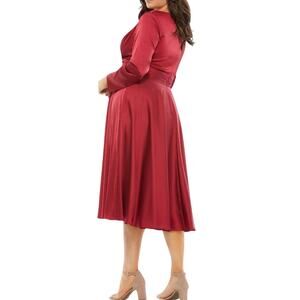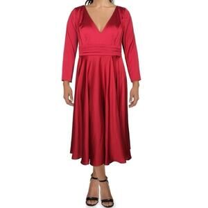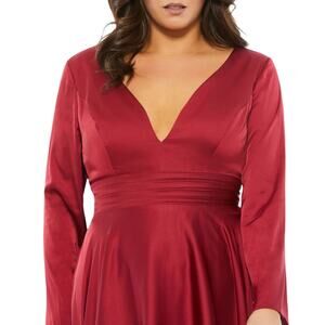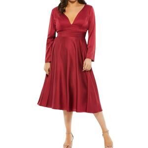 MAC DUGGAL 67907 Satin Sweetheart Flowy Midi Dress Burgundy Size 22W New w/ Tag