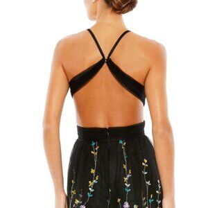 MAC DUGGAL 67976 EMBROIDERED CRISS CROSS SLEEVELESS BLACK MULTI GOWN sz 2