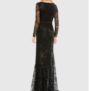 MAC DUGGAL 68016 EMBELLISHED WRAP OVER LONG SLEEVE BLACK GOWN sz 12