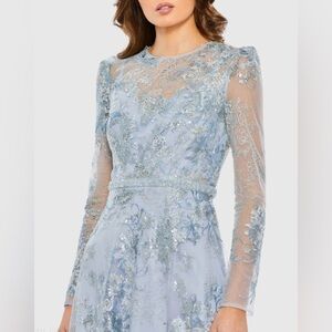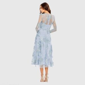 MAC DUGGAL 68020 Blue Embellished Illusion Long Sleeve Midi Dress Sz 18 $698